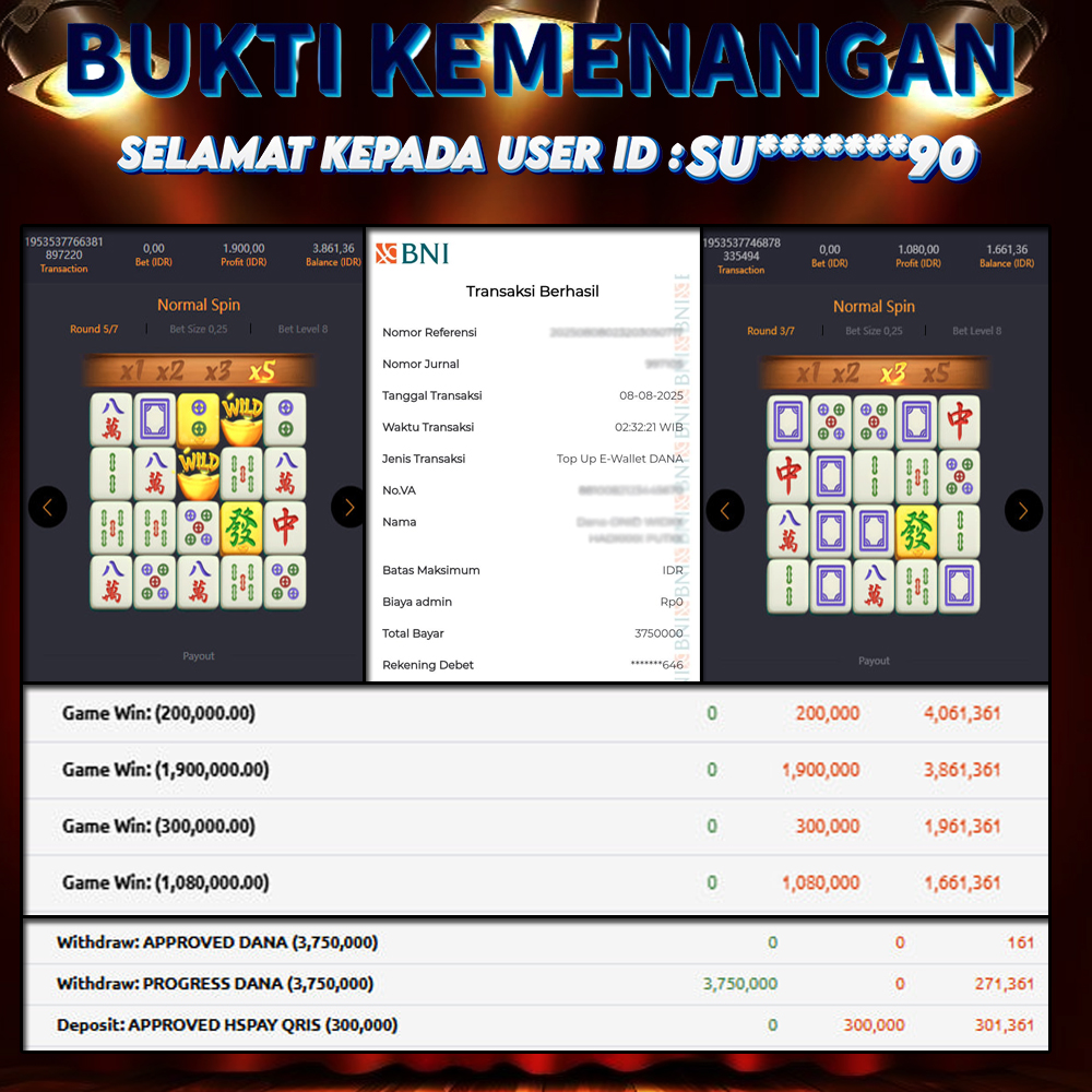 JACKPOT SLOT MAHJONG WAYS 08 AGUSTUS 2025 , Jackpot Slot Gacor, Kemenangan Slot, Bukti Kemenangan Slot, Kemenangan Slot PG SOFT, Menang Slot online, Slot Gacor, Situs Aman Terpercaya, WD Berapapun Pasti DI Bayar Tuntas, Maxwin Slot Online.