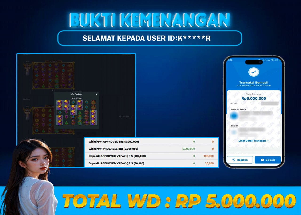 ATM4D2 dikenal sebagai situs terpercaya yang selalu menghadirkan pengalaman bermain slot online yang aman, fair, dan berlisensi resmi. Di sini, kami tidak hanya sekadar memberikan janji, tapi bukti nyata berupa slip kemenangan yang dapat Anda lihat secara langsung.