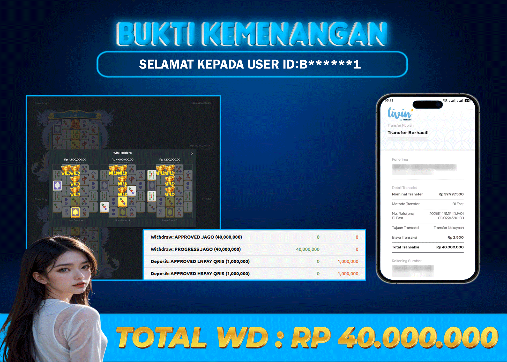 ATM4D2 dikenal sebagai situs terpercaya yang selalu menghadirkan pengalaman bermain slot online yang aman, fair, dan berlisensi resmi. Di sini, kami tidak hanya sekadar memberikan janji, tapi bukti nyata berupa slip kemenangan yang dapat Anda lihat secara langsung.
