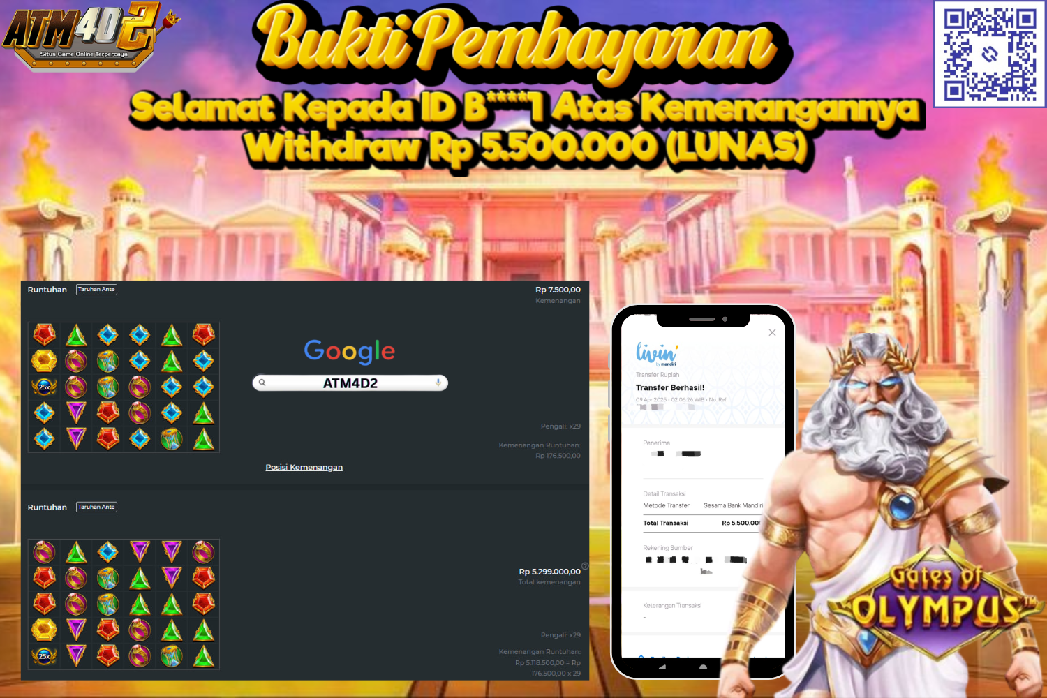 ATM4D2 dikenal sebagai situs terpercaya yang selalu menghadirkan pengalaman bermain slot online yang aman, fair, dan berlisensi resmi. Di sini, kami tidak hanya sekadar memberikan janji, tapi bukti nyata berupa slip kemenangan yang dapat Anda lihat secara langsung.