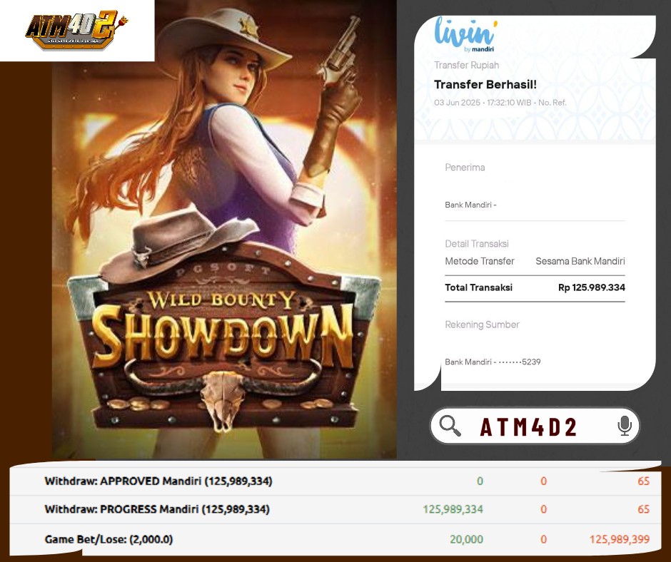 ATM4D2 dikenal sebagai situs terpercaya yang selalu menghadirkan pengalaman bermain slot online yang aman, fair, dan berlisensi resmi. Di sini, kami tidak hanya sekadar memberikan janji, tapi bukti nyata berupa slip kemenangan yang dapat Anda lihat secara langsung.
