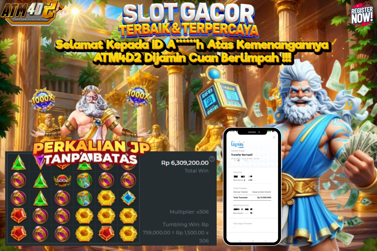 ATM4D2 dikenal sebagai situs terpercaya yang selalu menghadirkan pengalaman bermain slot online yang aman, fair, dan berlisensi resmi. Di sini, kami tidak hanya sekadar memberikan janji, tapi bukti nyata berupa slip kemenangan yang dapat Anda lihat secara langsung.