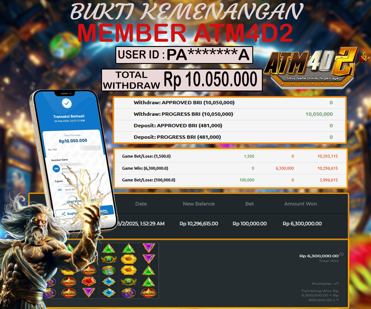 ATM4D2 dikenal sebagai situs terpercaya yang selalu menghadirkan pengalaman bermain slot online yang aman, fair, dan berlisensi resmi. Di sini, kami tidak hanya sekadar memberikan janji, tapi bukti nyata berupa slip kemenangan yang dapat Anda lihat secara langsung.