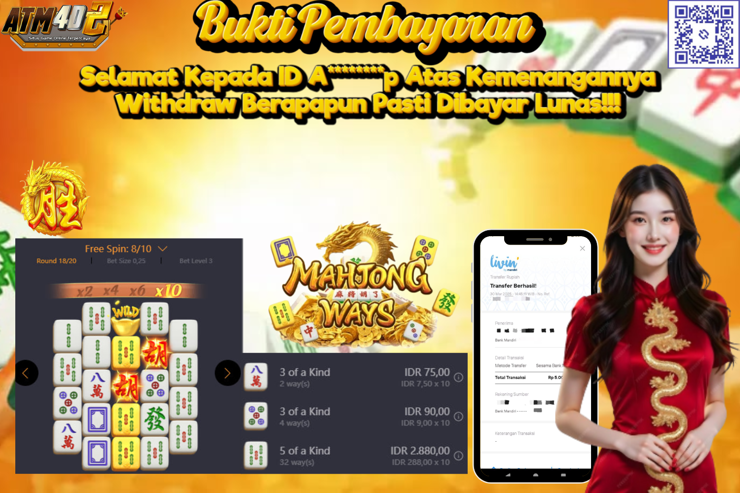 ATM4D2 dikenal sebagai situs terpercaya yang selalu menghadirkan pengalaman bermain slot online yang aman, fair, dan berlisensi resmi. Di sini, kami tidak hanya sekadar memberikan janji, tapi bukti nyata berupa slip kemenangan yang dapat Anda lihat secara langsung.