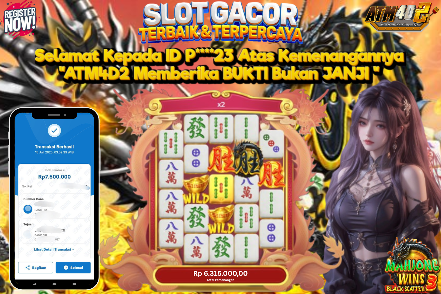 ATM4D2 dikenal sebagai situs terpercaya yang selalu menghadirkan pengalaman bermain slot online yang aman, fair, dan berlisensi resmi. Di sini, kami tidak hanya sekadar memberikan janji, tapi bukti nyata berupa slip kemenangan yang dapat Anda lihat secara langsung.