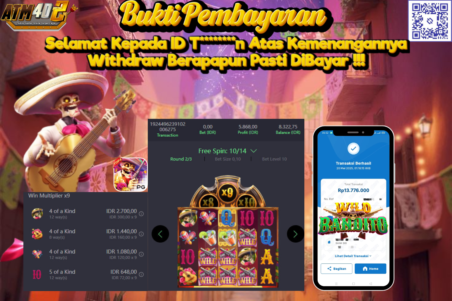 JACKPOT SLOT WILD BANDITO 20 MEI 2025 , Jackpot Slot, Kemenangan Slot, Bukti Kemenangan Slot, Kemenangan Slot PG SOFT, Menang Slot online, Slot, Situs Aman Terpercaya, WD Berapapun Pasti Di Bayar Lunas, Maxwin Slot Online.