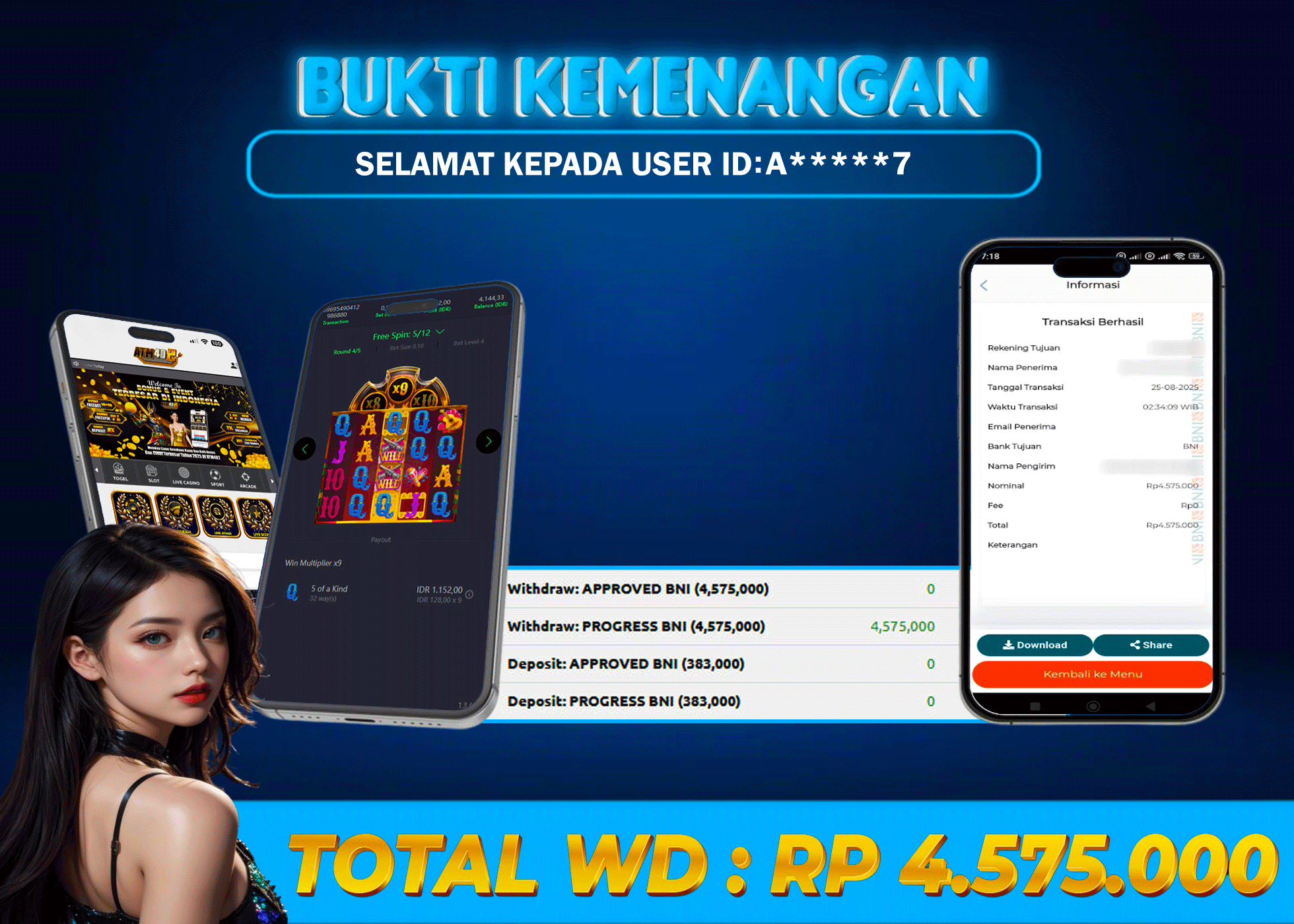 ATM4D2 dikenal sebagai situs terpercaya yang selalu menghadirkan pengalaman bermain slot online yang aman, fair, dan berlisensi resmi. Di sini, kami tidak hanya sekadar memberikan janji, tapi bukti nyata berupa slip kemenangan yang dapat Anda lihat secara langsung.